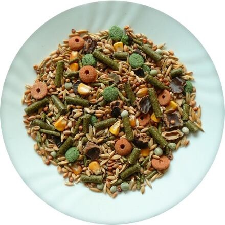 - Zutaten: Vollkornhafer, Weizen, Mais, Gerste, Sorghumhirse, Erbsen, Trockenfutter, Johannisbrot, extrudiertes Getreide…