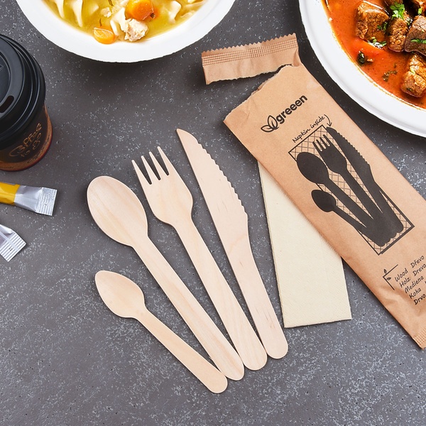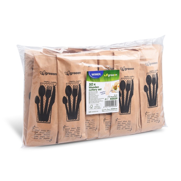 Papírenské zboží - Příborová sada (dřevo FSC 100%) nůž-vidlička-lžíce-lžička+ubrousek [50 sad]Magnifier ico