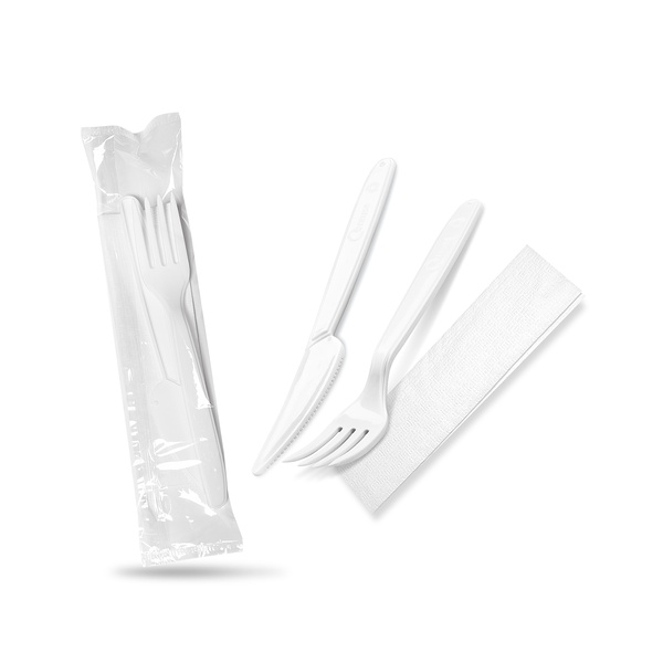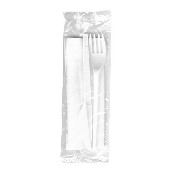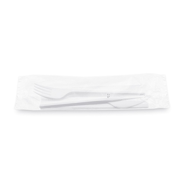 Volltext →Hygienicky balená sada plastových příborů a ubrousku.