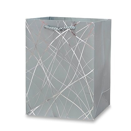 Dárková papírová taška Silver v elegantním stříbrném provedení je ideální pro malé dárky, šperky či drobné předměty. Stylový vzhled dodá vašemu dárku nádech luxusu.