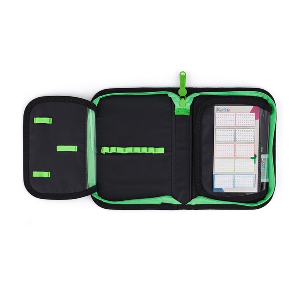 Einstöckiges Federmäppchen mit zwei Klappen für die Schule.