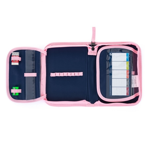 Volltext →Einstöckiges Federmäppchen für die Schule mit 2 Klappen, leer, enthält 25 Gummischlaufen zur Aufbewahrung von Schreibwaren.