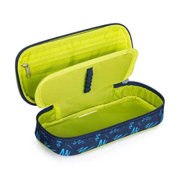 Die Tasche ist mit starken Reißverschlüssen, einer Tasche mit Reißverschluss und einer Klappe mit starken Schlaufen auf beiden Seiten ausgestattet. Unter der Klappe befindet sich ein Platz zur freien Aufbewahrung von Schreibwaren oder anderen Kleinigkeiten.