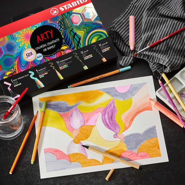 Volltext →Unter der farbigen Folie befindet sich eine schwarze Schachtel mit hoher Qualität aus Matt -Karton. Das Stabilo -Logo ist oben in der Box gestempelt.