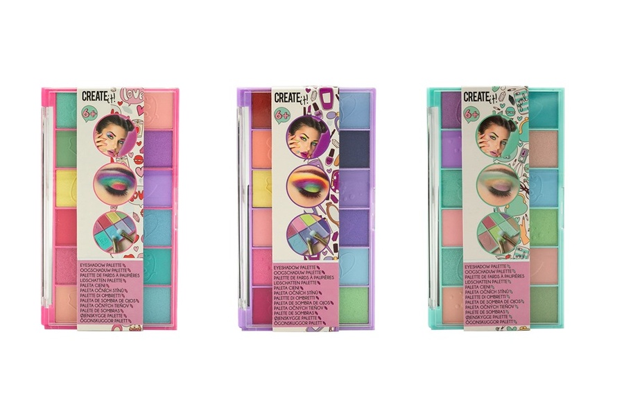 Create it! – Eine Lidschattenpalette (12 Nuancen) mit den knalligsten Farben für ein verspieltes Make-up – von Regenbogenkombinationen bis zum monochromen Look.
