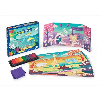 Dank 7 Tintenfarben können Kinder mit den Fingerspitzen malen und illustrierte Karten mit bunten Tieren zum Leben erwecken. Die kreative Aktivität fördert Feinmotorik, Kreativität und Hand-Auge-Koordination.