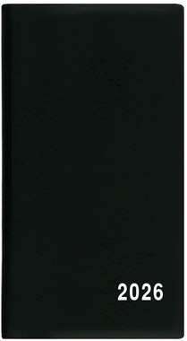 Jednoduchý a praktický měsíční diář vyrobený z jemného hladkého materiálu s polomatným povrchem černé barvy. Ideální pro každého, kdo si oblíbil měkkou šitou vazbu. jemný hladký materiál PVC,potisk roku bílou barvou, šitá vazba V1, ofset, 70g/m2