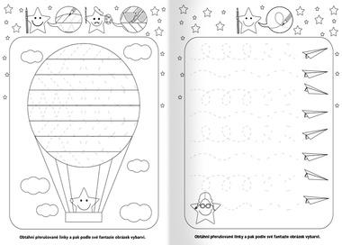Další díl grafomotorických cvičení pro děti. Zajímavé ilustrace doprovodí děti v psaní čar svislých, vodorovných, vlnovek nebo elips. Obrázek lze následně vymalovat. Grafomotorická cvičení jsou určená především pro děti v předškolním věku, kde se zábavnou formou učí úchop tužky a koordinaci oka a ruky. VNITŘEK: ofset 100g, tisk 1/1, OBÁLKA: KL 200g 4/1 CMYK + lamino lesk 1/0