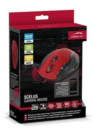 Optická kabelová myš "Scelus", černo-červená, USB, herní, SPEEDLINK St