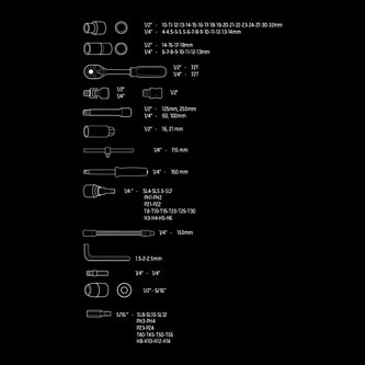 Sada nástrčných klíčů 1/2 a 1/4 NEO (ref. č. 08-665), skládající se ze 94 dílů vyrobených z vysoce kvalitní chrom-vanadio… Volltext →