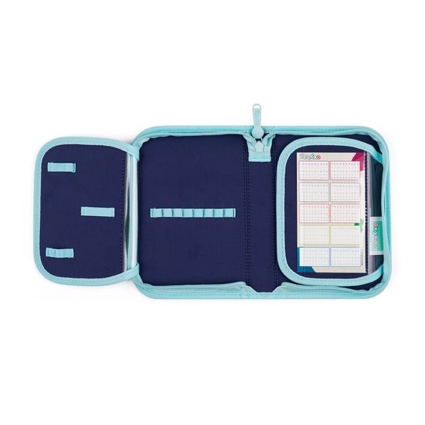 • Einstöckiges Federmäppchen mit zwei Klappen – Schlaufen für Stifte und transparente Folie für Stundenpläne.