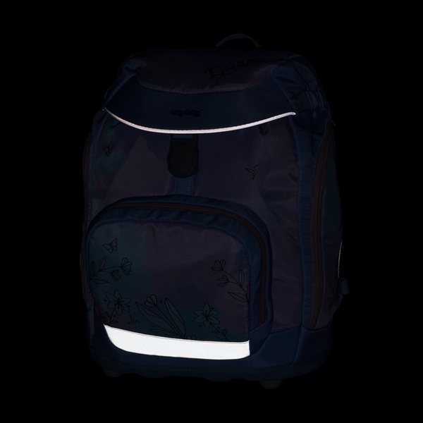 Die seitlichen Reißverschlusstaschen eignen sich ideal für eine Trinkflasche, die Vordertasche bietet Platz für einen Snack und reflektierende Elemente erhöhen die Sicherheit des Kindes. Dank der austauschbaren Klettpatches kann jedes Schulkind den Rucksack individuell gestalten.