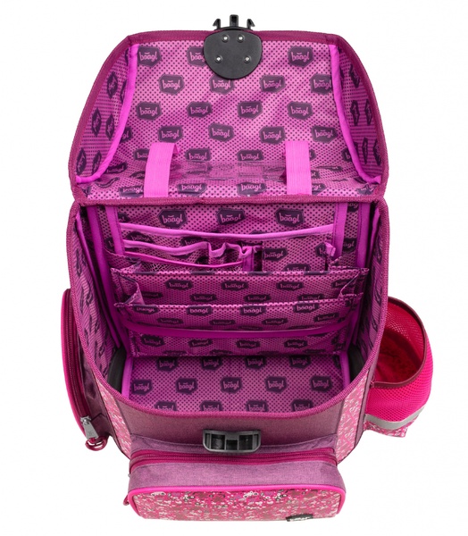 • Schulmappe mit verstärktem Körper, internem Organizer und drei separaten Taschen und Verschlüsse an