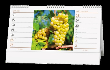 Vinaři pozor! Stolní kalendář se čtrnáctidenním kalendáriem pro všechny milovníky vína. Papír: G print, 100 g/m2 Obálka: křída lesk 135 g/m2 Stojánek je z kvalitní bílé lepenky 600g/m2 Dělená kovová spirála "twin wire"