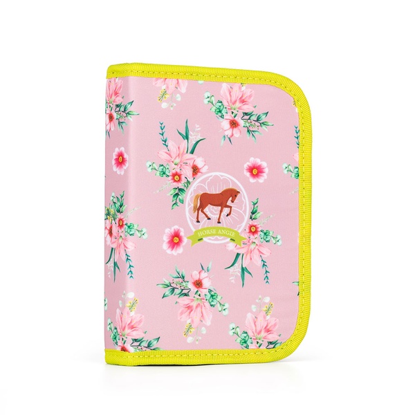 Einlagiges Schulfedermäppchen mit 2 Klappen, leer enthält 25 Gummischlaufen zur Aufbewahrung von Schreibwaren.