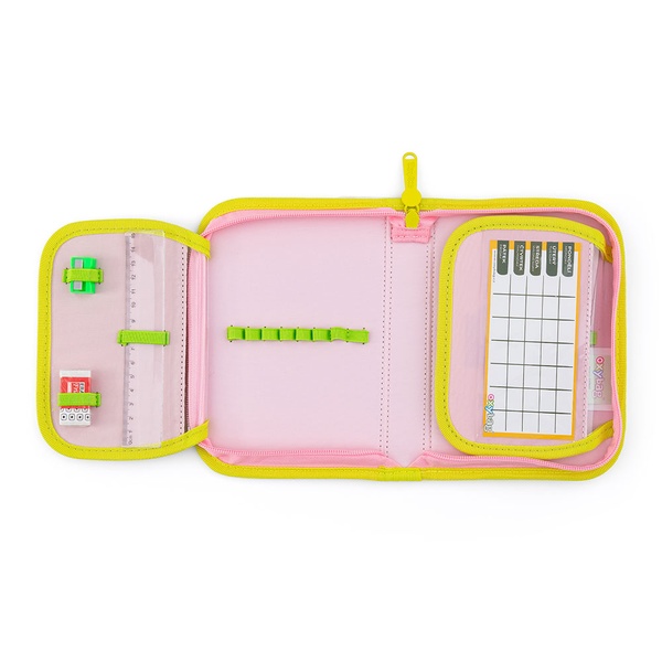 Volltext →Einlagiges Schulfedermäppchen mit 2 Klappen, leer enthält 25 Gummischlaufen zur Aufbewahrung von Schreibwaren.