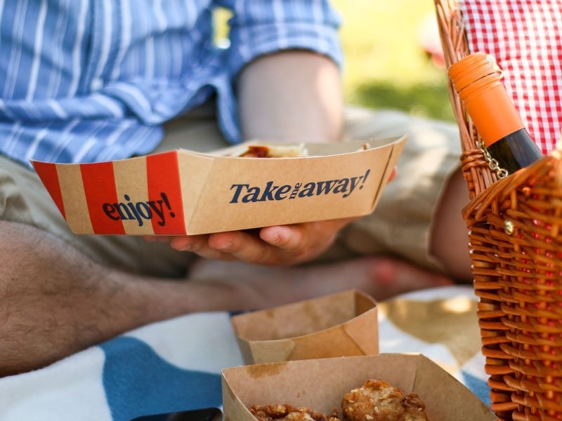 • Um Lebensmittel direkt aus der Box zu essen, können Sie auch die Verpackung für die Lieferung verwenden.