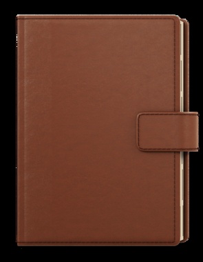 Elegantní týdenní diář ve formátu A5 se stylovým a znovupoužitelným obalem v hnědé barvě. Praktické vnitřní uspořádání nabízí množství přihrádek na vizitky, poutko na tužku a bezpečné magnetické zavírání. Diář bude působit luxusně a profesionálně – ideální volba pro práci, podnikání i osobní organizaci. jemný matný materiál, ražba, oboustranná pěnová výplň desek, obšití v barvě potahu, magnetická přezka, poutko na tužku, 3 vnitřní kapsy, šitá vazba V8, kapitálky, stužka, perforované rožky, papírová manžeta