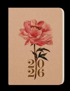 Týdenní diář s obalem v přírodním provedení. Módní doplněk s prostorem pro poznámky a plánování. tištěná grafika na hnědém přírodním papíru Kraft, měkká vazba, stužka, kapitálky, kulaté rožky, ofset, 70g/m2
